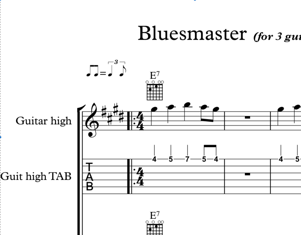 "Bluesmaster" for three guitars (10 pages)
